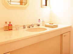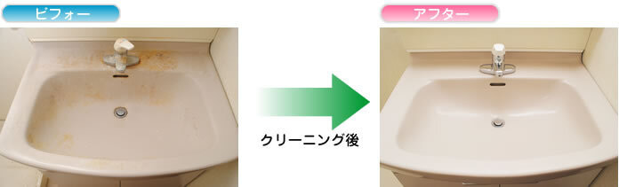 - 洗面台、収納棚外周は専用洗剤で洗浄します。